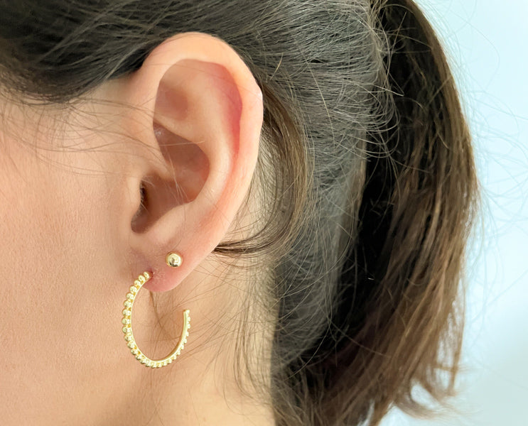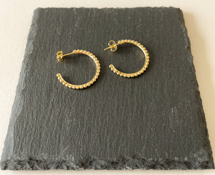 Goldene Perlenkreolen, Huggies mit 18 Karat vergoldet